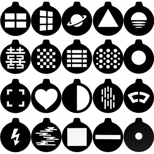 - Incluye 20 gobos intercambiables que permiten proyectar patrones y texturas creativas en retratos, cine y creación de contenido digital.