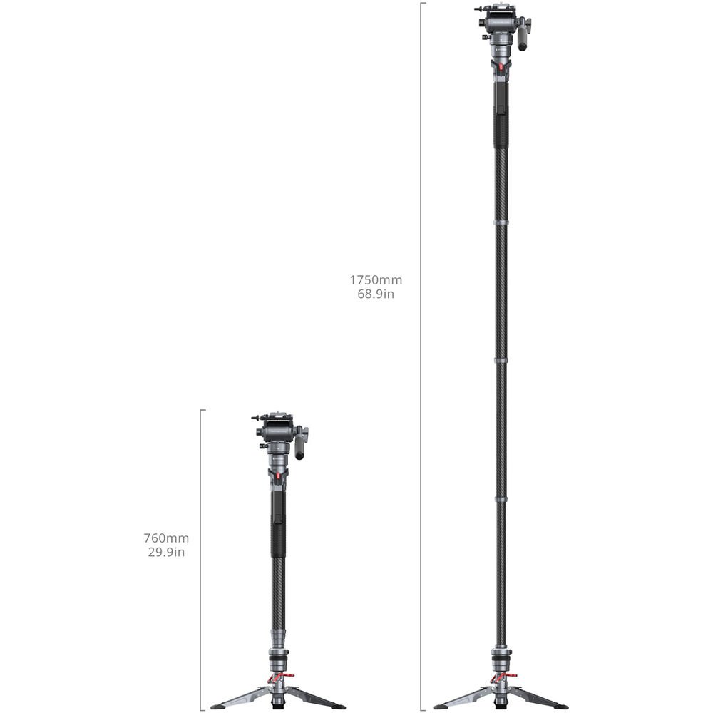 - Construcción Pro en Fibra de Carbono: Fabricado con fibra de carbono de alta resistencia, ofrece una capacidad de carga de hasta 15 kg en el monopié, manteniendo un peso ligero de solo 2.5 kg para transporte.